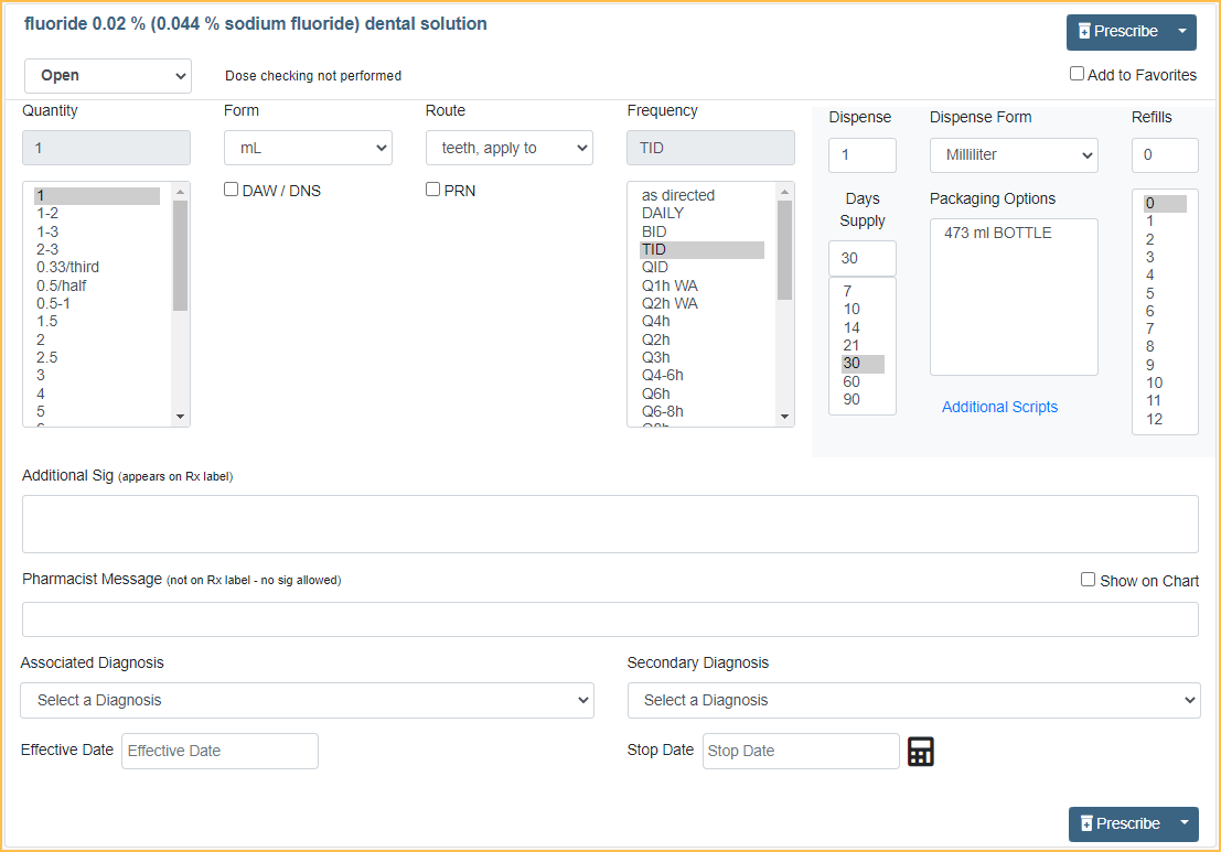 - This window is not shown when prescribing a Drug Set or Compound.