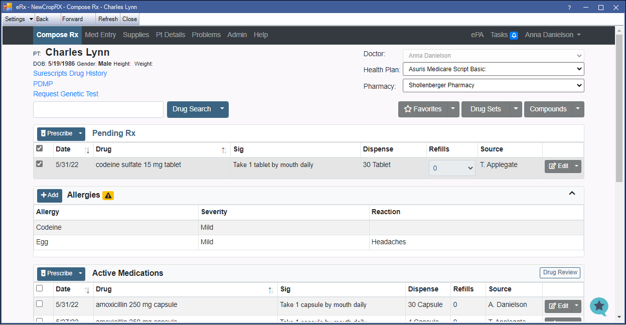 - Click Drug Sets to choose from a list of saved groups of prescriptions.