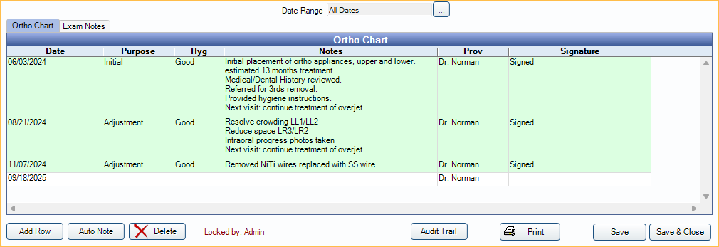 The Ortho Chart can be customized in Preferences and includes an option to enter notes.