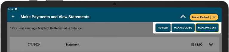 - Enter the payment Amount. Reference the Last Statement Balance and Payments Since Last Statement to determine the amount.