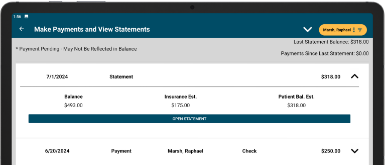 Last Statement Balance: The patient estimated balance as of the last Statement on the account.