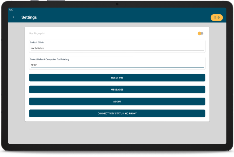 Switch Clinic: Tap to switch to a different clinic. Only displays when clinics are enabled and multiple clinics are signed up for ODTouch.