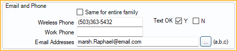 - Wireless: The patient's wireless (i.e., cell) phone number. Phone numbers are automatically formatted when typing.