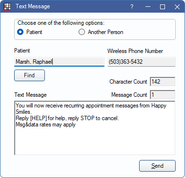 - Exclude Automated Msgs: Exclude this patient from receiving text or email automated messages. Automated messages include: eReminders, eConfirmations, Automated Thank-Yous, WebSched Recall, WebSched ASAP, WebSched New Patient, WebSched Notify, Patient Portal Invites, Birthday Emails, and Statements.