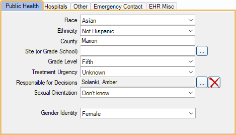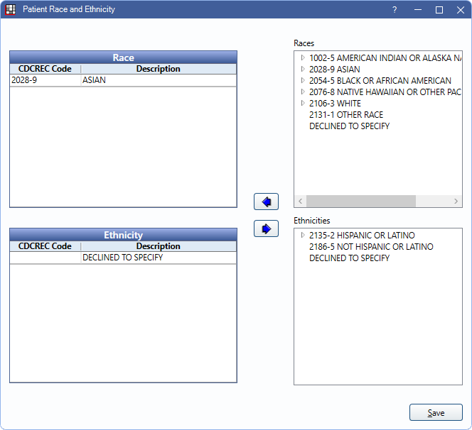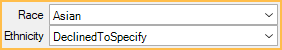 If EHR is turned on, Race and Ethnicity are selected using dropdowns instead of a selection window. Click a dropdown, then highlight the options to select. Press Shift while clicking to select multiple race options.