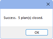 A confirmation appears once payment plans have finished closing, indicating the number of payments plans closed. If no payments plans met the criteria, a message appears instead indicating "There were no plans to close."