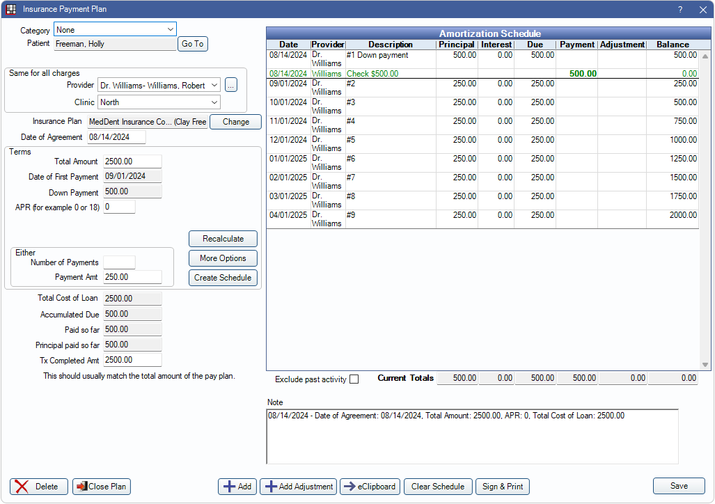 Insurance Plan: Click Change to select the insurance plan this payment plan is attached to, then click OK.
