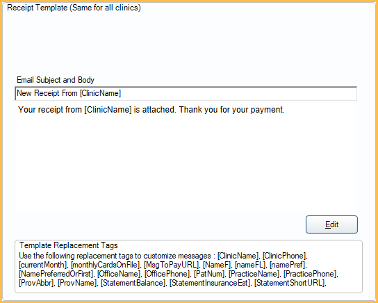 Note: The [MsgToPayURL] tag is required. This sends the patient to the Payment Portal to make a payment. If missing, an