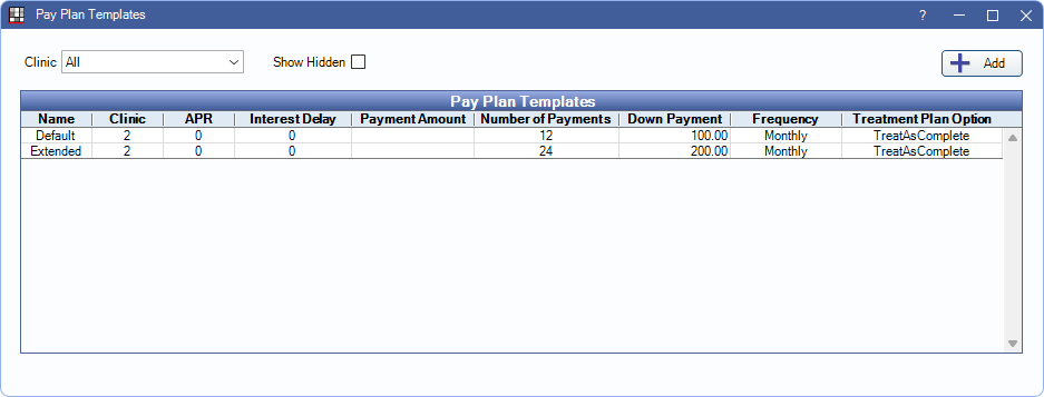 Payment Plan Templates are used when creating Payment Plans from Open Dental or from within ODTouch Payment Plans.