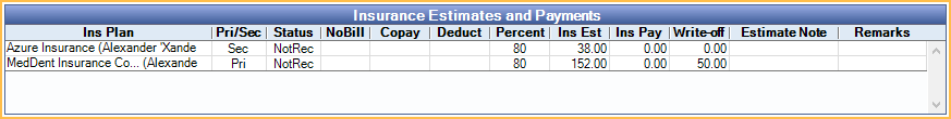 Each entry row is a Claim Procedure. Estimates are usually automatic, based on the Insurance Plan. If an estimate doesn't look right or is missing, first make sure the insurance plan is set up correctly.