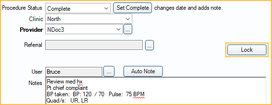 When locking is allowed, completed procedures will have a Lock button on the right side of the Edit Procedure window.