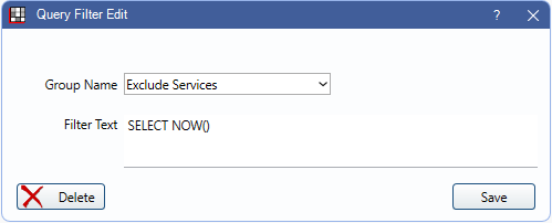 Edit Filter Text for a Group. Double-click into an existing Filter from the Filters grid in the Query Filters window.