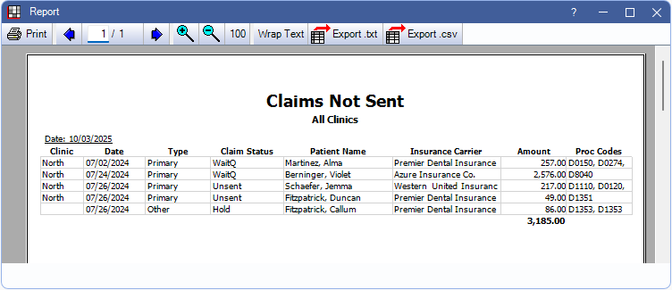 Run the Claims Not Sent Report to find claims that still need to be sent to insurance.