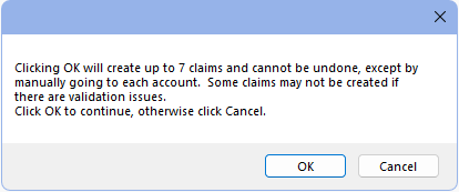 A single claim is created for each patient, even if there are differing dates of service. Procedures that had claims created are now removed from the list and are Waiting to Send. Any unselected procedures or those with errors, remain in the list. The Preference Require claims to have no missing data affects claim creation from this report.