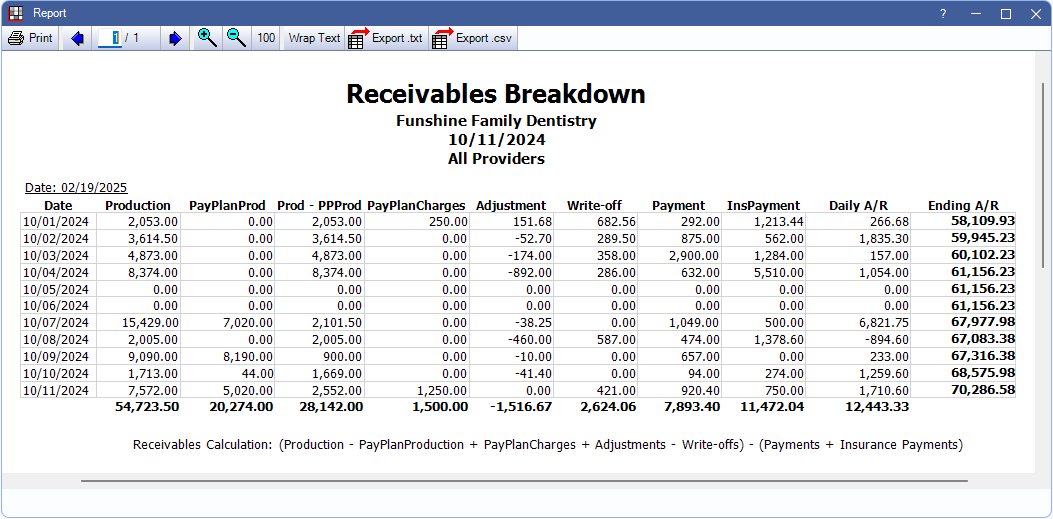The Receivables Breakdown Report allows offices to see changes in accounts receivable throughout a calendar month.