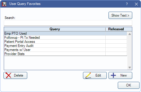 - User Query Favorites: Open Query Favorites for a list of saved queries.