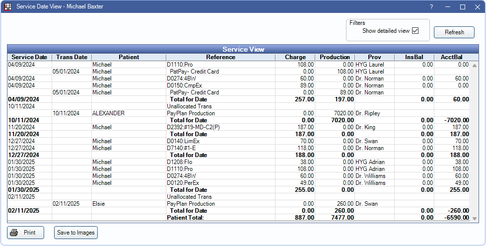 The Service Date View allows users to quickly see which procedures have been paid for.