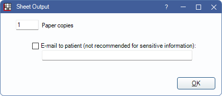 - Description: Defaults to the sheet description set in Sheet Def Properties. Displays in the Patient Forms window and Progress Notes.