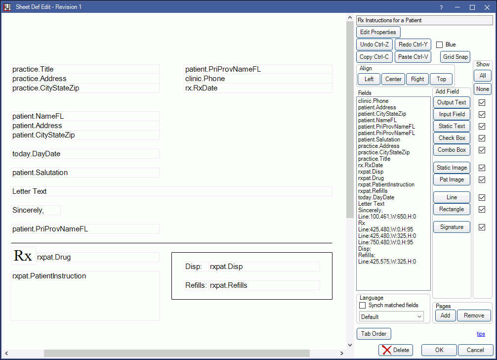 To customize a RxInstruction sheet type, see Edit Sheet Def.