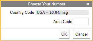 - Enter the area code and click OK. This option is only available in the Basic View of the Signup Portal. Complete the signup process by making sure a monthly texting limit is entered above, and click the Save button at the bottom.