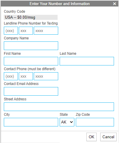 - Landline Phone Number for Texting: Enter the current landline phone number.
