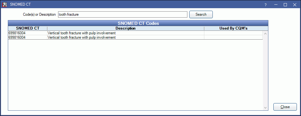 To associate a SNOMED code with a Problem open the Problem List, double-click on an existing problem, or Add a new one, and select the SNOMED CT code from the pick list (...).