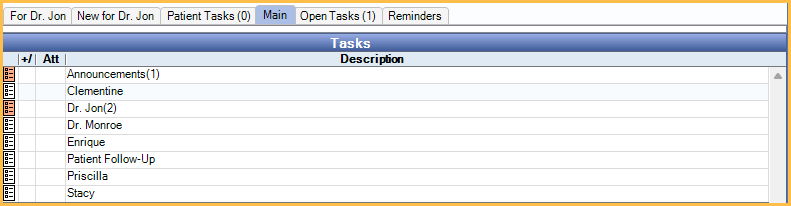 Task Lists and Tasks are managed in the Tasks Area, and can be used for office communications, reminders, patient lists, daily, weekly, or monthly check off lists, etc.