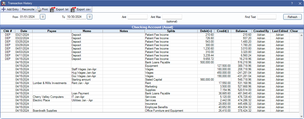 - Export .txt: Save the Edit Transaction details to a tab-delimited TXT file.