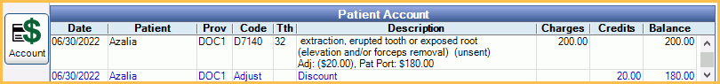 Click OK to apply the discount to procedures. The Discount column in the Procedures grid will reflect any discounted percentage amounts + any PPO insurance write-offs.