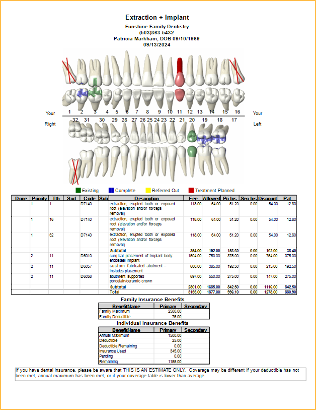 Saved Treatment Plans can be printed out to present detailed treatment options to patients.