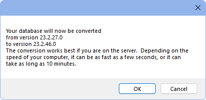 - Depending on the current version, there may be additional warnings or announcements. Take additional action as needed, then click OK to proceed. If the are no warnings or announcements, see Step 4.