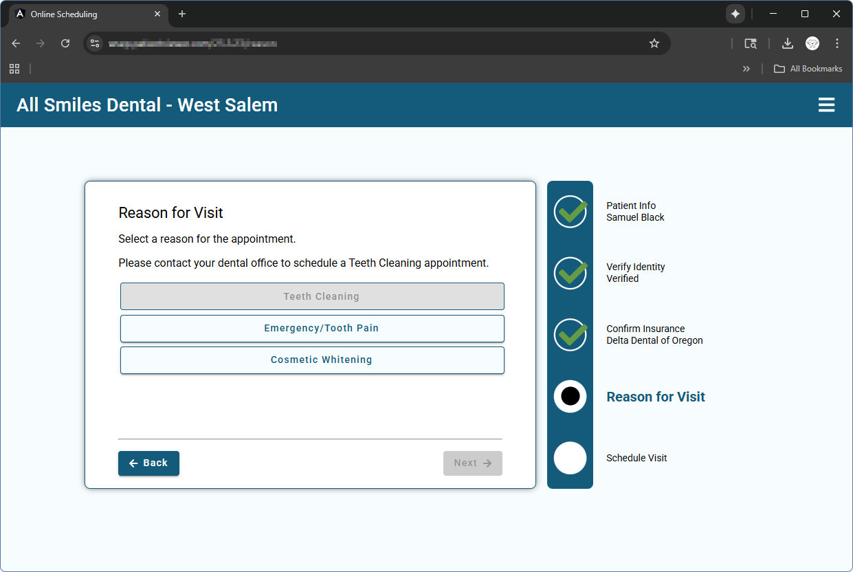 - Optionally, the patient can be routed to a Web Form after booking the appointment.