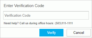 The patient retrieves the code, then enters it in the Verification Code field. The code is not case-sensitive and is only valid as long as the Enter Verification Code window is open.
