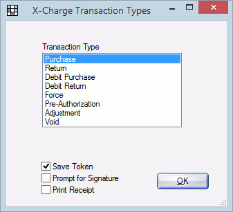 Transaction Types: Refer to the XCharge user manual for details on transaction types.