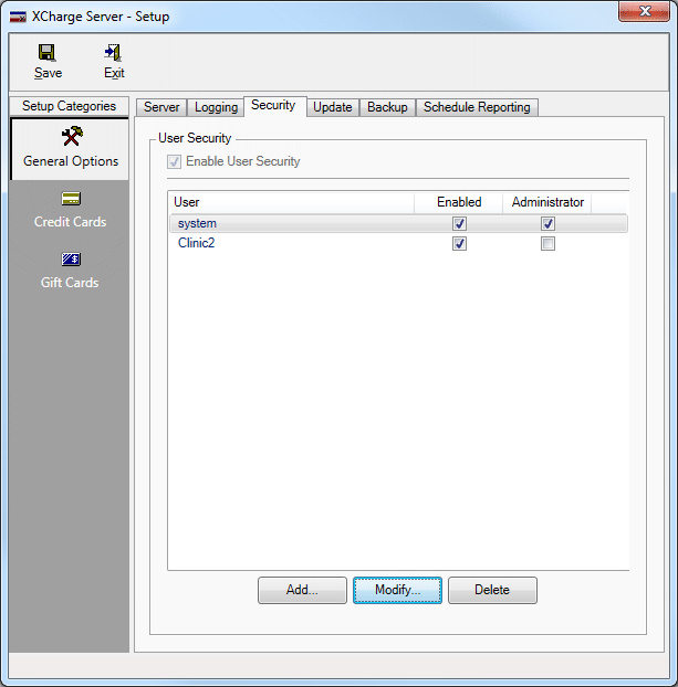 Create clinic users in XCharge for each Open Dental clinic that will process payments with XCharge.