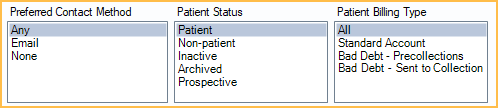 - Preferred Contact Method: Filter by preferred contact method as set in the Edit Patient Information window.