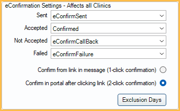 Exclusion Days: Click to open eConfirmation and Web Sched Recall Exclusion Days.