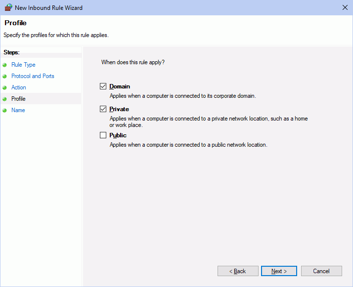 - Check Domain and Private.