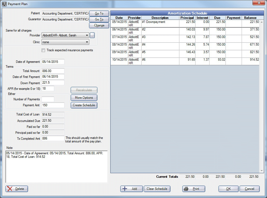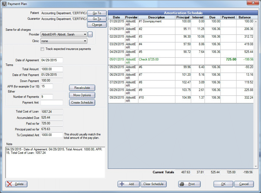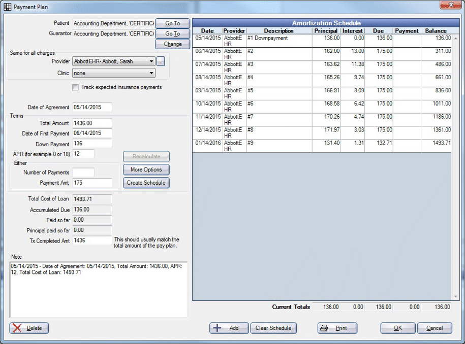 Payment Plan Unit Test Screens
