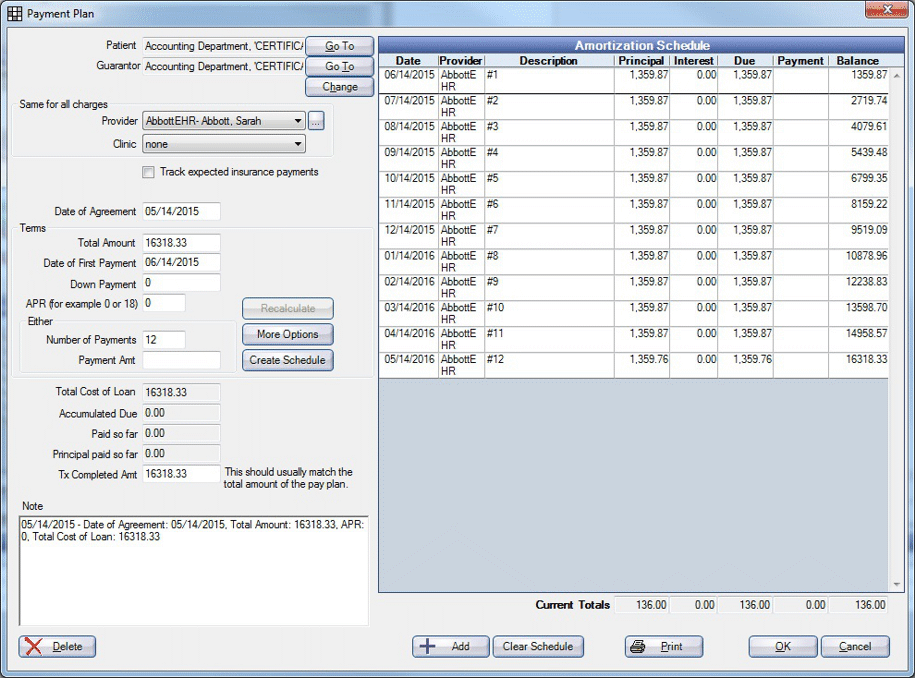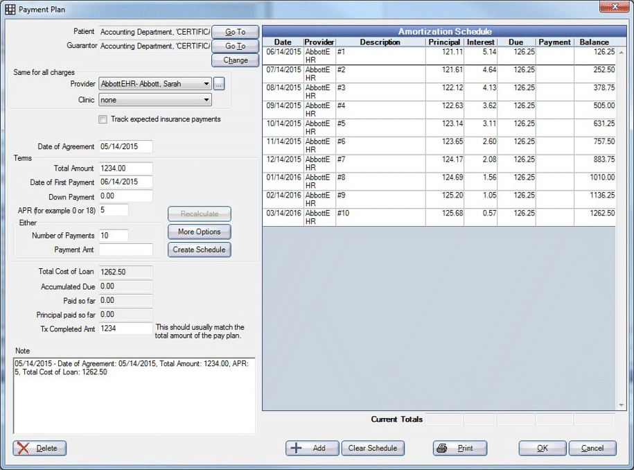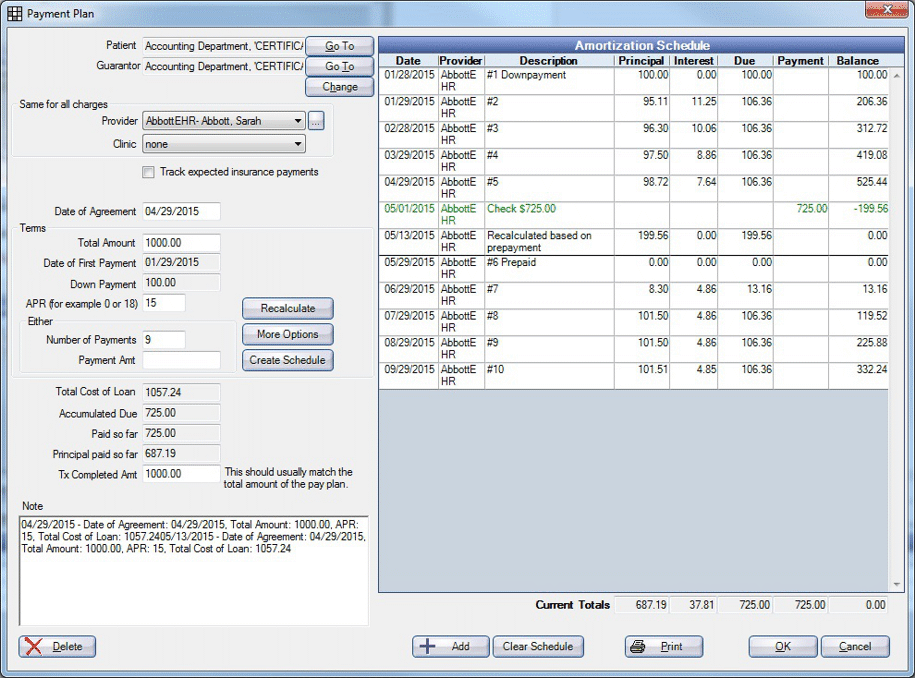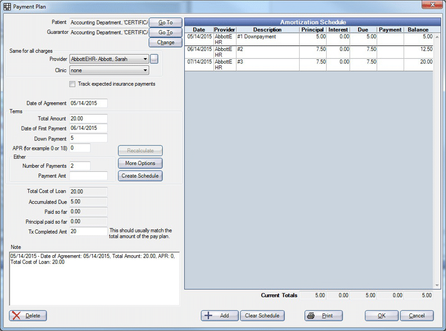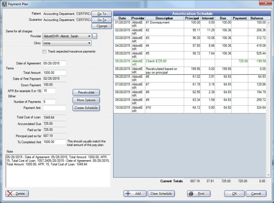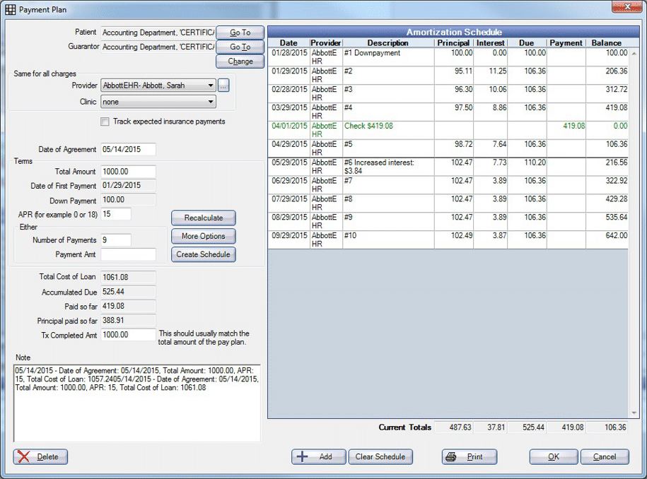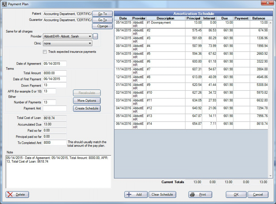 These screens represent the different Payment Plan Unit Tests scenarios.